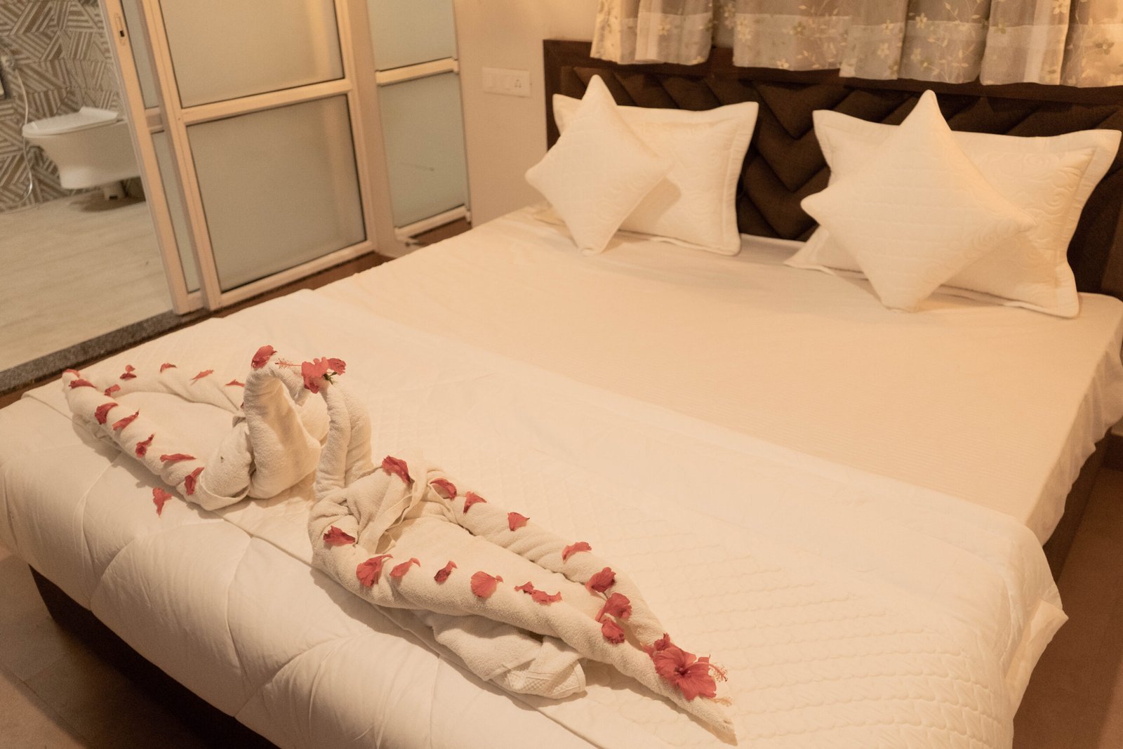 Comfortable king-size bed with premium linens