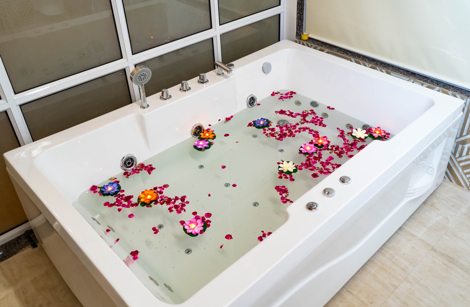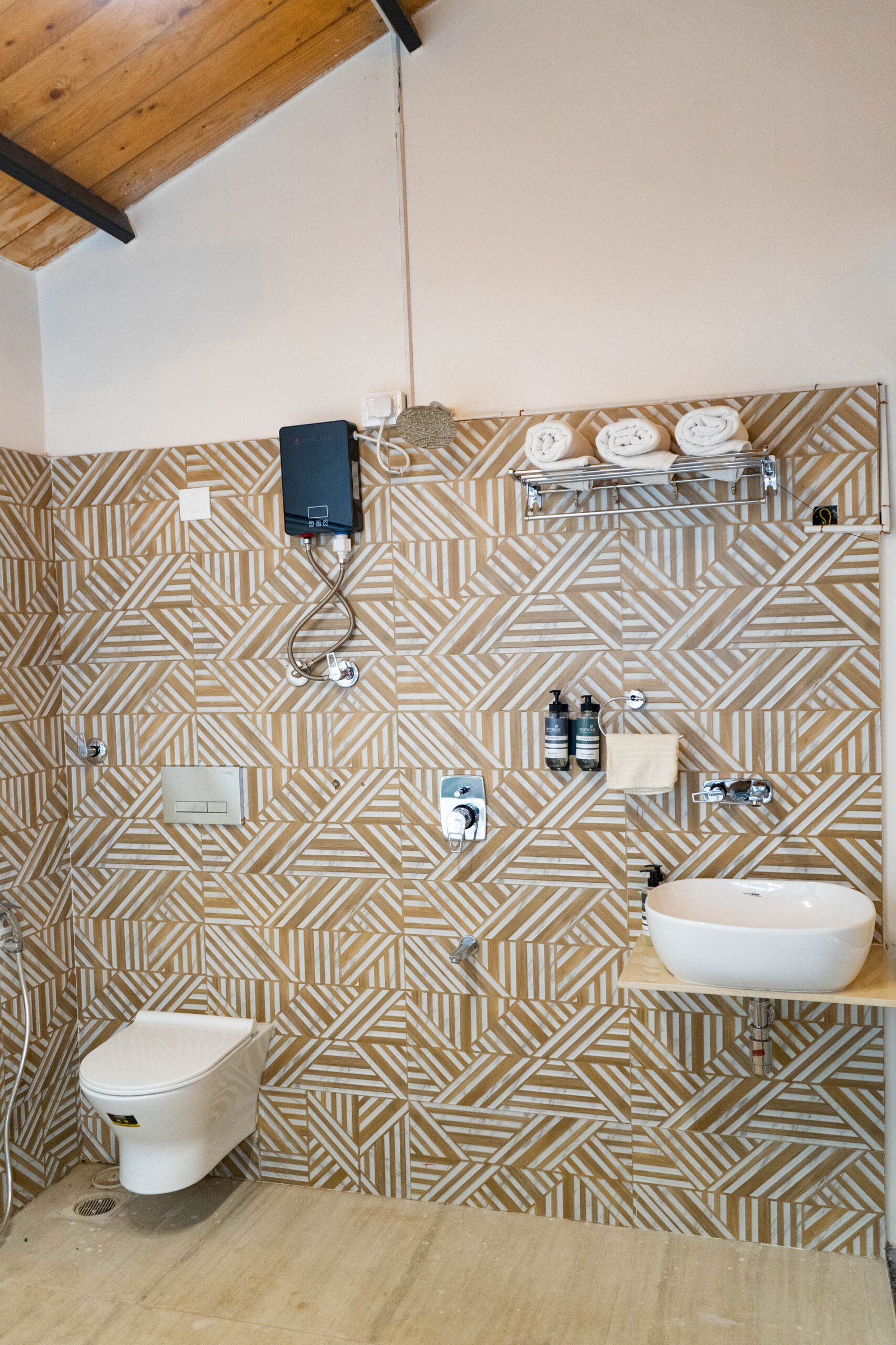 Elegant attached bathroom with modern fittings and toiletries